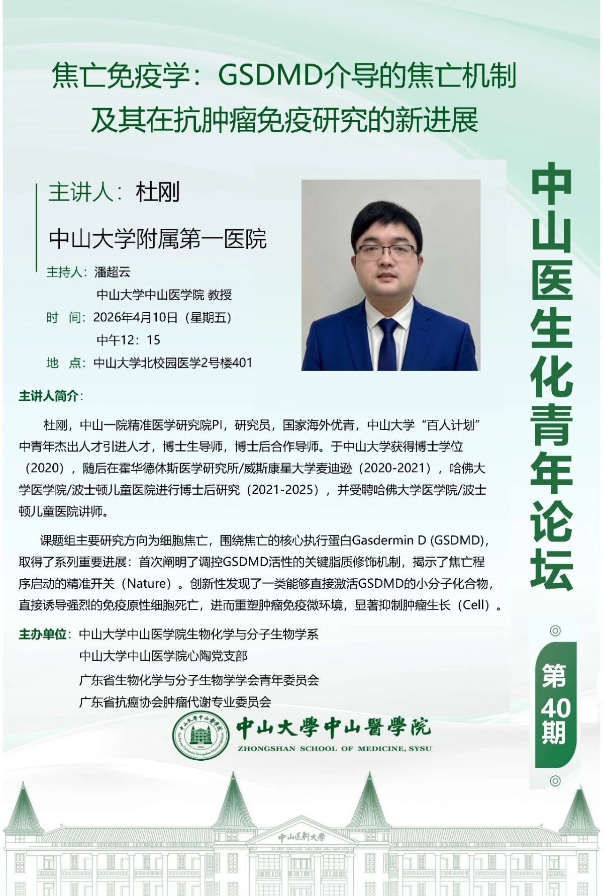 导航痕迹 欧美色情 科学研究 欧美色情 中山医生化青年论坛第40期 科学研究 科研通知 欧美色情 科研平台 办理指引 中山医生化青年论坛第40期 焦亡免疫学:GSDMD介导的焦亡机制及其在抗肿瘤免疫研究的新进展 发布人:张玉琦 发布日期:2026-04-09