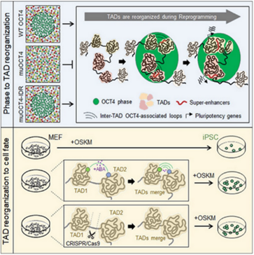 该论文首次发现蛋白质相分离、染色质三维结构和细胞命运转变之间的调控机制,建立了通过操控TAD重组、和控制蛋白质相分离,从而调控细胞命运的新方法,也开发了基于染色质三维结构精准预测细胞命运调控因子的新算法。